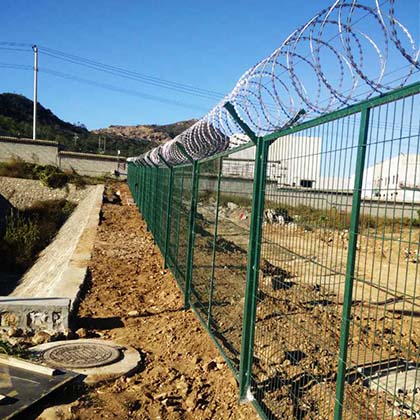 監(jiān)獄防攀爬網(wǎng)又稱(chēng)Y型安全防御護(hù)網(wǎng),用V型支架立拄,加強(qiáng)型焊接片網(wǎng),安全防盜連接件和熱鍍鋅刀片刺籠組成強(qiáng)度和安全防御性級(jí)別很高.近