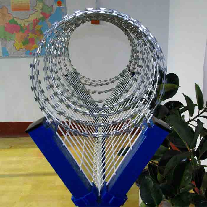 監獄外部防護網 是一種新型防護網,由銳利尖角鍍鋅鋼板或不銹鋼薄板做刀片,鋼絲做芯線組合而成的防護器材,該產品具有嚇阻、防翻越等效果,材質堅硬,高強度,高張力,造型設計獨特,不宜觸摸,因而能…