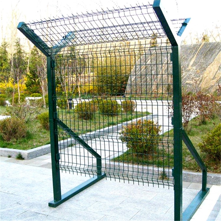 鋼筋網圍界因其由V型支架立柱、加強型焊接片網、安全防盜連接件和熱鍍鋅刀片刺籠組成可以有效防止行人攀爬跨越,可以提高安全防御,被應用在飛機場上。機場圍界采用寬為2.5米,高度為2.5米的帶V型加強筋網片及60*60mm(80*80mm)的立柱組成,其中網片網孔為50*75mm、50*100mm、50*150mm,絲徑為φ5mm高強度低碳鋼絲,立柱壁厚為2-4mm,立柱頂端加裝φ500mm或φ600mm刀刺滾籠。