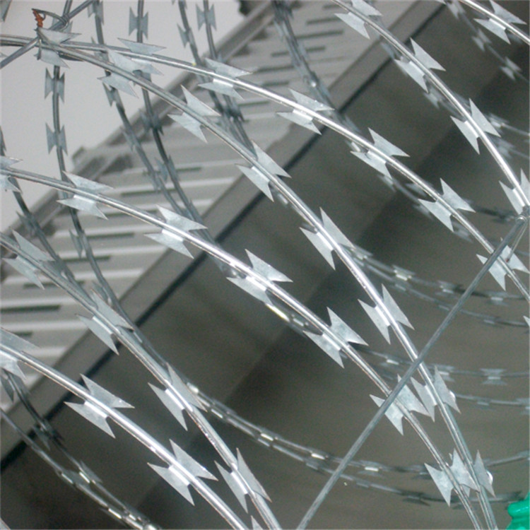 監(jiān)獄護(hù)欄的刀片刺繩是一種熱鍍鋅鋼板或不銹鋼薄板沖壓出尖銳的刀片,高張力鍍鋅鋼絲或者不銹鋼絲做芯線組合而成的阻絕器材。由于刺網(wǎng)造形獨(dú)特不易觸摸,因而能達(dá)到極好的防護(hù)隔離效果。