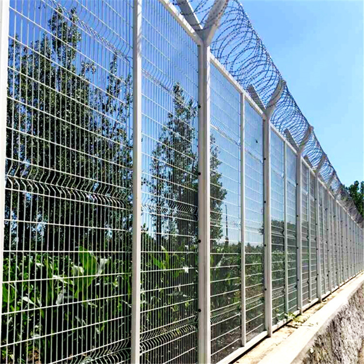 監獄護欄網又稱作“Y型安全防御護網”,是由V型支架立柱,加強型焊接片網,安全防盜連接件和熱鍍鋅刀片刺籠組成強度和安全防御性級別很高。