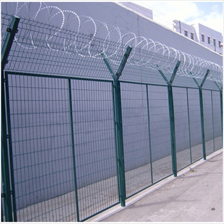 監獄物理安全網它又稱作 “物理安全防御護網”,它通常是由支架立柱,加強型焊接片網,安全防盜連接件和熱鍍鋅刀片刺籠組成強度和安全防都性勢別很高。最近幾年來,被廣泛的運用在監獄,軍事基地等高安全的場所。