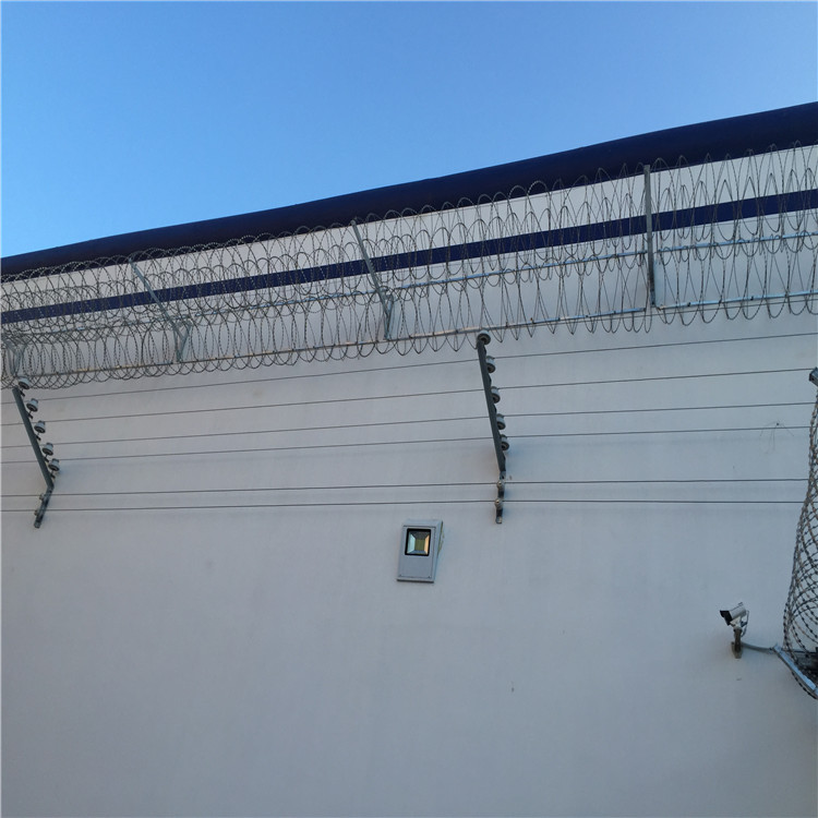 刀片刺繩防護(hù)網(wǎng)是一種新型防護(hù)網(wǎng)。品具有嚇阻效果好.美觀.施工便利.經(jīng)濟(jì)實(shí)用等優(yōu)異特點(diǎn)。刀片刺繩防護(hù)網(wǎng)主要用于園林公寓.機(jī)關(guān)單位.監(jiān)獄.哨所.邊防等的圈禁防護(hù)。刀片刺繩防護(hù)網(wǎng)由銳利尖角鍍鋅鋼板或不銹鋼薄板做刀片,高張力鋼絲做芯線組合而成的阻絕器材。由于刀片刺繩防護(hù)網(wǎng)造形獨(dú)特不易觸摸,因而能達(dá)到比較好的防護(hù)隔離效果。直線形刀片刺網(wǎng)由刀片型直線刺網(wǎng)交叉焊接成型,可用于防盜窗、高速護(hù)欄、隔離柵。施工迅速、效果顯著。刀片刺繩防護(hù)網(wǎng),有多種架設(shè)方式可供選擇,施工迅速,既省經(jīng)費(fèi),又可達(dá)到嚇阻的效果。