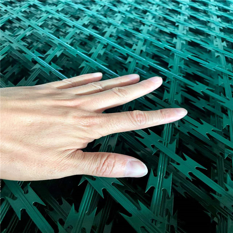 刀片鋼網墻,顧名思義,是由刀片和鋼網組成的墻體。刀片采用優質鋼材制成,經過精密的加工和打磨,呈現出鋒利的刃口。而鋼網則是由細密的鋼絲編織而成,堅固耐用,能夠有效防止外界物體的侵入。刀片與鋼網緊密結合,形成了一道難以逾越的屏障。