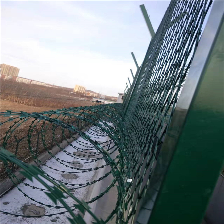 5. 網面:刀刺網護欄網的網面采用防腐噴涂工藝或電鍍鋅等處理方式,有效防止銹蝕和氧化,同時能夠保證在惡劣環(huán)境中的使用壽命。