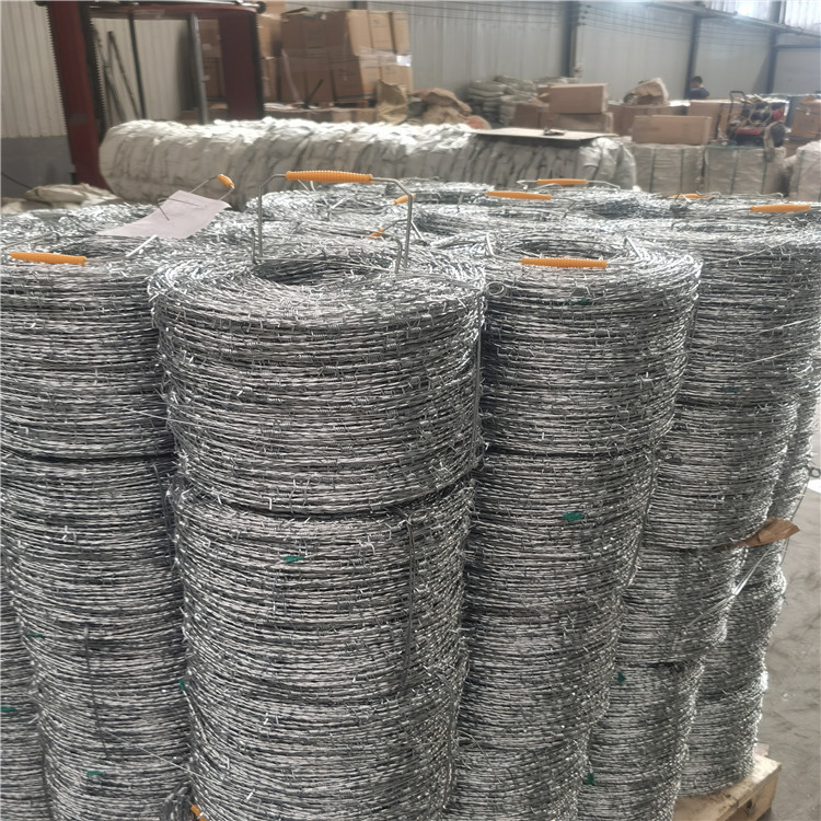 生產刺繩的工廠采用直接將鍍鋅絲或將涂塑鐵絲加工成刺繩.這種編擰刺繩的方法會使生產效率有所提高,但有時會有刺絲不夠固定的弊端.隨著技術的發展,現在也有一些生產廠家開始使用加一些軋花的工序,使線材表面不再完全圓滑,從而大大提高了穩定刺距的作用.