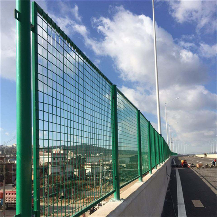 立交橋防拋網-防拋網隔離柵價格-高架橋防護網廠家 立交橋防拋網的主要目的是安裝在橋梁的兩側,尤其是橋梁的兩側,以確保道路的穩定性。 立交橋防拋網是一種縱向跨越高速鐵路道路的安全保護網,這種金屬產品可有效防止行人跌落,并使起落架不安全。雙層防腐處理法提高使用壽命,白色外觀,豪華大氣,簡潔明了。