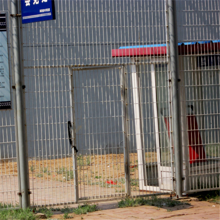 監獄隔離網大門組成結構:首先把網片焊接在鐵管框架上,框架是方管或者圓管焊接成的框架結構,在框架上焊接用于個立柱連接的連接板,用防盜螺栓與立柱連接。為了保證網片的防拆卸性能,網片連接方式采用特制防盜緊扣件,有效防止人為的破壞性拆卸。