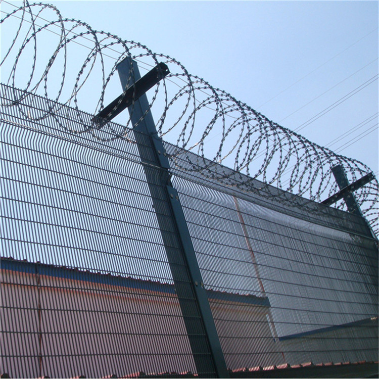 軍事禁區(qū)隔離網(wǎng)廠家介紹:由焊接鋼網(wǎng)加蛇腹形刀刺網(wǎng)組合而成。產(chǎn)品具有結(jié)構(gòu)新穎、堅固緊密、網(wǎng)面平整、網(wǎng)孔均勻、刀鋒銳利、防攀爬、防腐蝕性強(qiáng)等特點(diǎn)。建設(shè)于監(jiān)獄的內(nèi)外墻地面及高墻之上,網(wǎng)墻內(nèi)側(cè)或頂部加裝蛇腹形刀刺網(wǎng),形成一道高不可攀、難以逾越的隔離障礙。配合高壓打擊電網(wǎng)、各種監(jiān)控報警設(shè)備確保監(jiān)獄安全萬無一失。