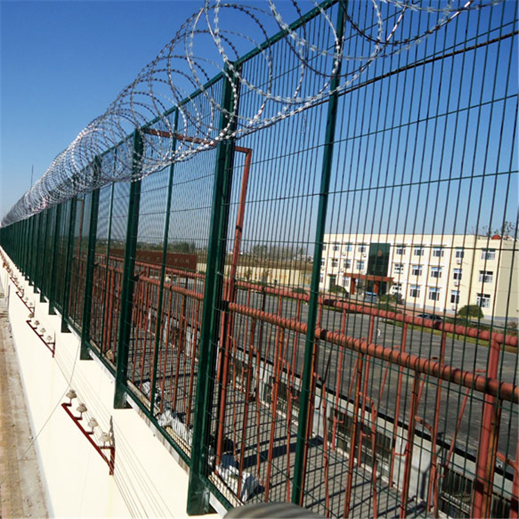 監獄圍欄網片:50*50,50mm*100mm,50mm*200mm或其他規格可確定,網片采用V型加固,可大大增強圍網的沖擊力,立柱為60*60矩形鋼,頂部焊接V型框架。 或使用70毫米*100毫米的懸掛連接柱。 所有產品均采用熱鍍鋅采用優質聚酯粉末靜電噴涂,采用國際流行的RAL色。